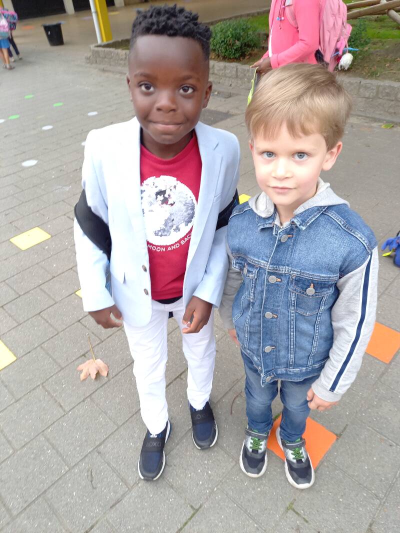 Deze voormiddag hadden we de eerste activiteit van dit schooljaar met onze meter of peter uit het 6de leerjaar. We gingen samen op de foto en mochten daarna nog even samen spelen op de speelplaats onder een stralend zonnetje!
