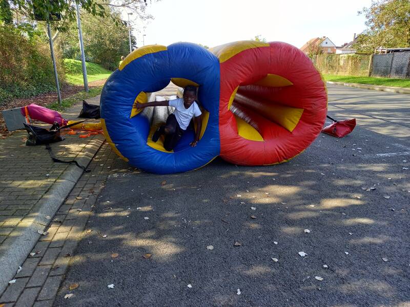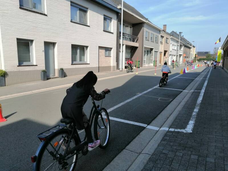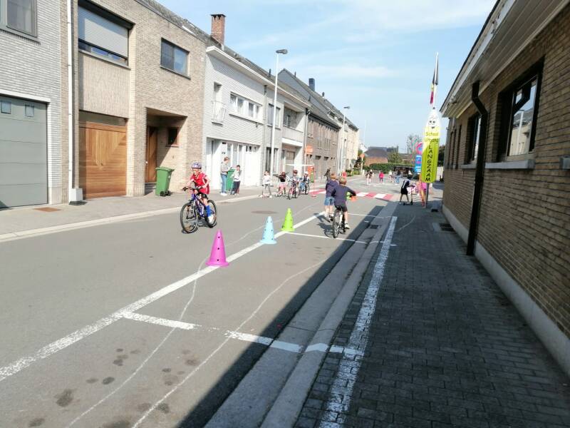 De Leliestraat werd een ganse dag autovrij gemaakt en we konden met de klas een uurtje fietsen, steppen, rolschaatsen en spelen op straat.
